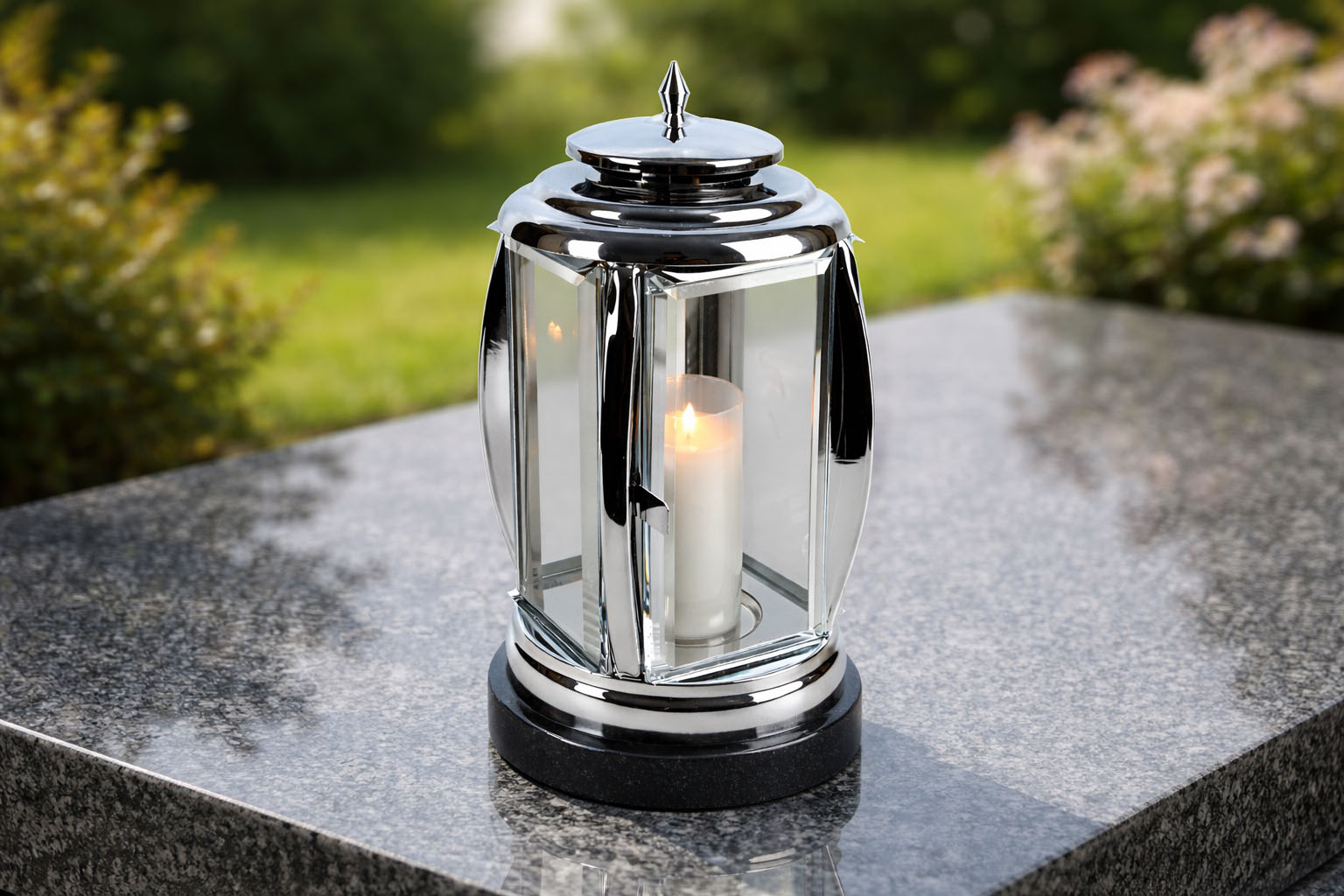 Odkryj niezwykły lampion nagrobny, który łączy w sobie elegancję stali nierdzewnej INOX w połysku z naturalnym czarnym granitem. Ten piękny dodatek to nie tylko ozdoba pomnika, ale również wyraz szacunku i pamięci wobec Twoich bliskich.