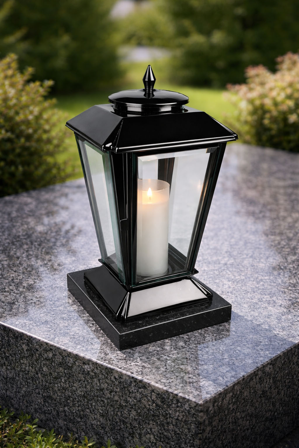 Odporność na ciepło znicza parafinowego gwarantuje bezpieczne użytkowanie lampionu przez cały rok. Całość wystarczy przykleić do nagrobka, co ułatwia montaż i eliminuje potrzebę wiercenia.