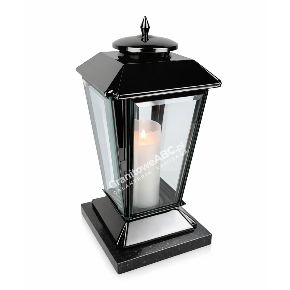 Odkryj piękny znicz całoroczny w wyjątkowym kształcie trapezu, który nie tylko zachwyca swoim wyglądem, ale także solidnością wykonania. Nasz lampion nagrobny to połączenie wysokiej jakości stali nierdzewnej INOX w połysku w kolorze czarnego złota z naturalnym czarnym granitem, tworzące harmonijną i elegancką kompozycję.