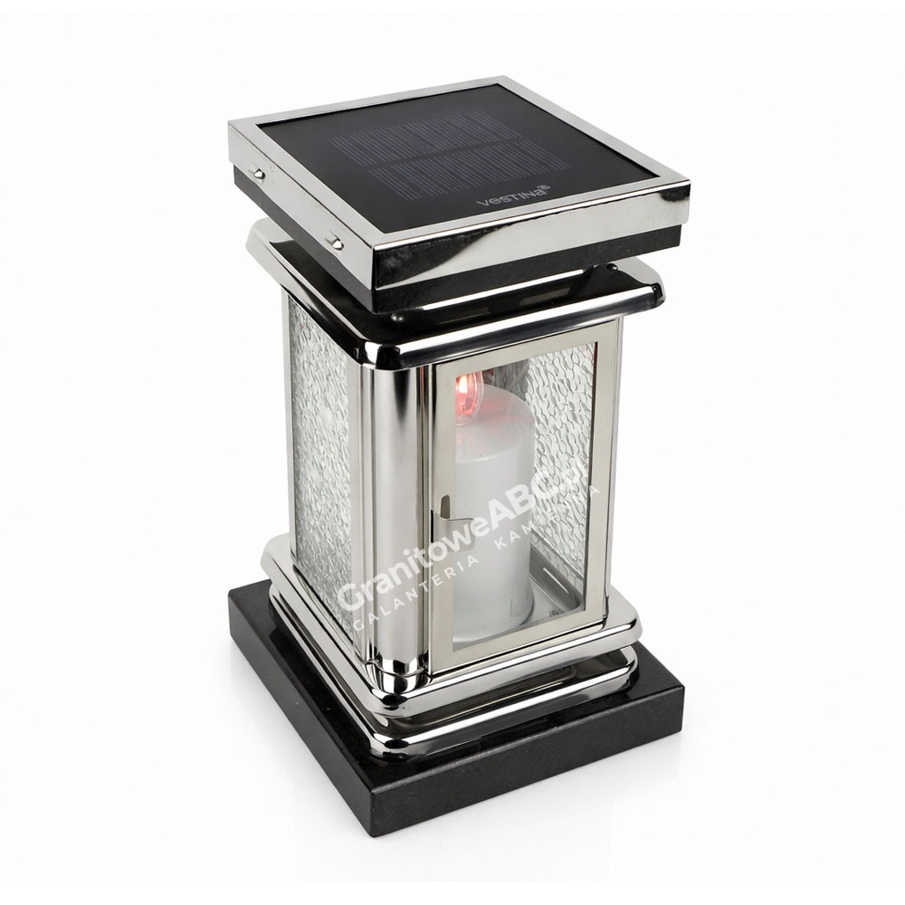 Nowoczesne i eleganckie lampiony solarne ze stali nierdzewnej. Nieustannie rośnie popularność lampionów solarnych ponieważ jest to świetna alternatywa dla tradycyjnych zniczy. Pełnią one zarówno funkcję użytkową, jak i dekoracyjną. Nagrobek wzbogacony o lampion solarny od razu będzie wyglądał w bardziej atrakcyjny sposób. Lampiony solarne będą świetnym uzupełnieniem każdego pomnika. Konstrukcja lampionu solarnego oparta jest na oszklonym korpusie ze stali nierdzewnej i granitowych dekli. Zasilane energią słoneczną panele pozwalają na świecenie znicza elektrycznego z diodą led, w optymalnych warunkach nawet przez 1000 dni. Dzięki temu światełko pamięci będzie świeciło niemal przez 2-3 lata. Jest to na pewno bardzo praktyczne i ekologiczne rozwiązanie.